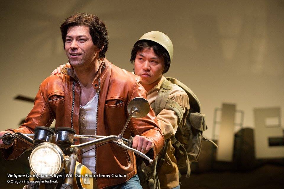 “Thereโ€™s a lot of doubling (and more) from a strong cast (Will Dao plays four characters, and Amy Kim Waschke and Paco Tolson each play six), as the play roams across a mythic America as Quangโ€™s motorcycle Odyssey seems to trace the old Highway 66 Mother Road.” Bill Varble, Mail Tribune